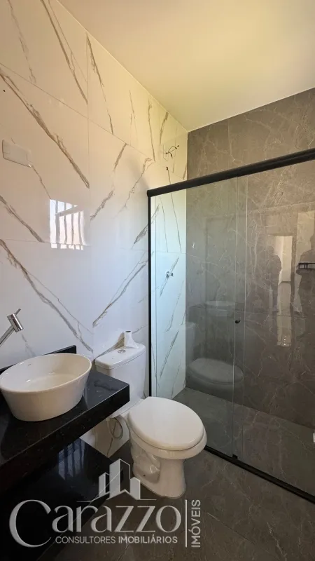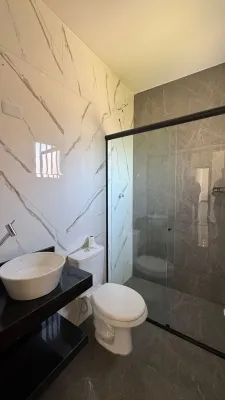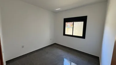 Casa nova geminada com 02 dormitórios sendo 01 suíte, sala de estar e jantar integradas, 01 banheiro social, área de serviço, churrasqueira, piso porcelanato, laje.
