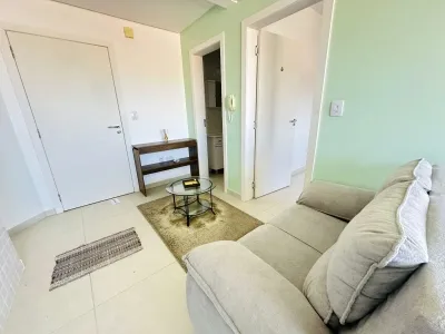 Apartamento mobiliado composto de 01 dormitório, sala de estar e jantar integradas, 01 banheiro social, área de serviço, churrasqueira, box para 01 carro.