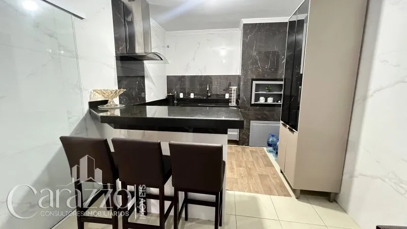 Casa nova de esquina composta por 2 dormitórios sendo 1 suíte, sala de estar, cozinha, 01 banheiro social, área de serviço, churrasqueira, semi mobiliada, garagem, abrigo para o carro, com piscina, laje de concreto, telha de concreto, cerca de vidro, piso porcelanato, jardinagem.