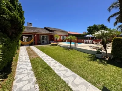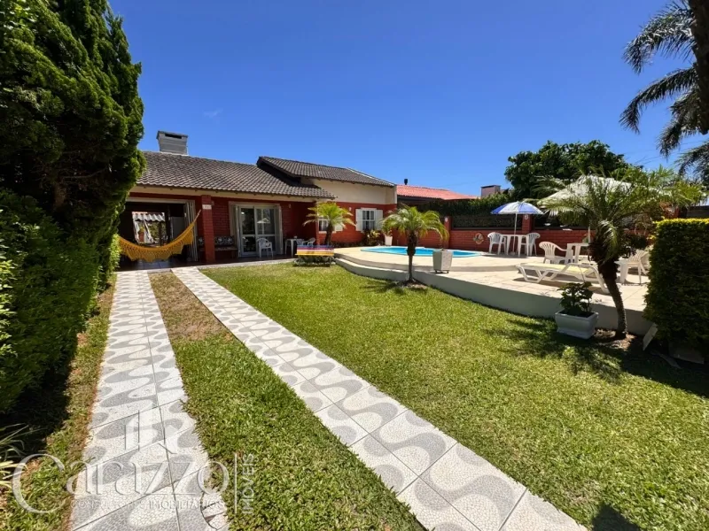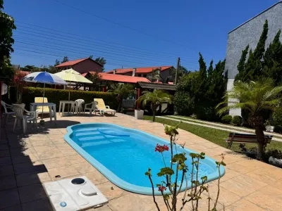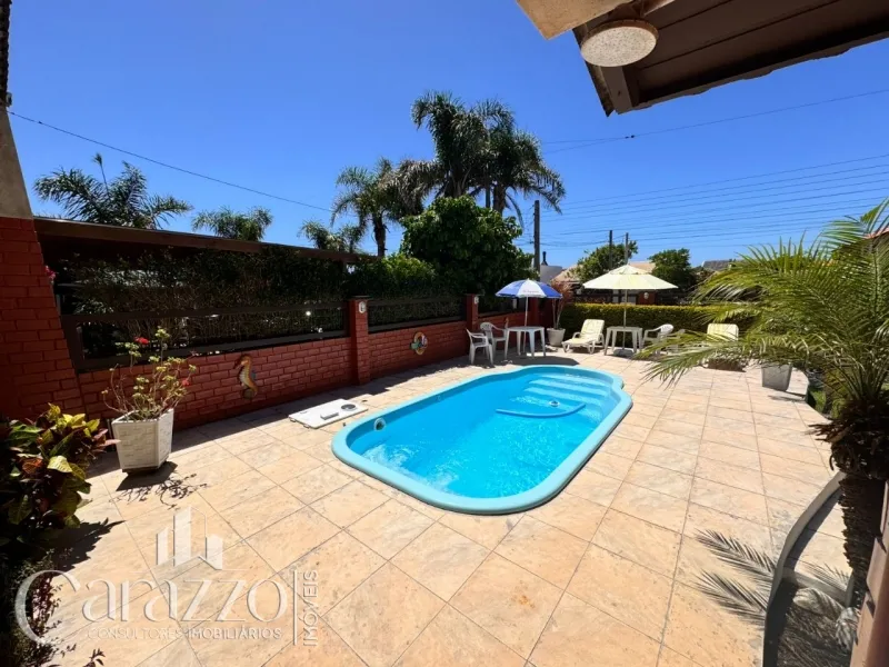 Casa em alvenaria com 3 dormitórios, 2 banheiros, piscina, garagem com churrasqueira, pátio amplo, totalmente mobiliada.