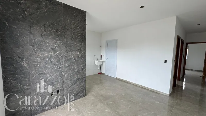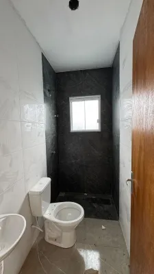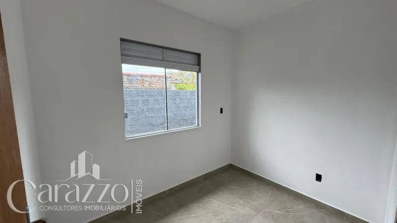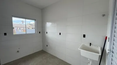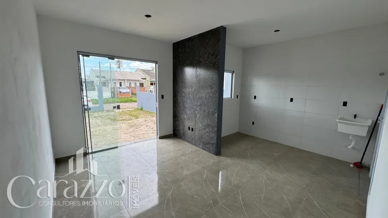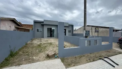 Composta de 2 dormitórios, sala de estar/ jantar, cozinha, área de serviço, banheiro social, toda em laje de concreto, pátio frente e fundos, vaga para veiculo.