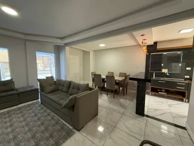 Ao adentrar esta casa, você é recebido por um espaçoso living de dois ambientes, banhado pela luz natural que entra pelas amplas janelas, criando uma atmosfera convidativa para relaxar e socializar. A cozinha ao estilo americano é um ponto focal da residência, com seus acabamentos de alta qualidade e bancadas generosas, perfeitas para os amantes da culinária experimentarem suas habilidades.