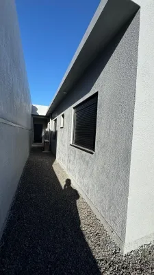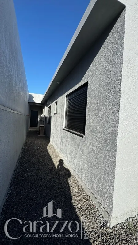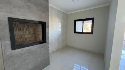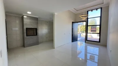 Composta de 03 dormitórios 01 sendo suíte, sala de estar/ jantar, cozinha, churrasqueira, amplo pátio, frente e fundos, piso porcelanato, abertura em alumínio preto com persianas automatizadas, iluminação toda em led.