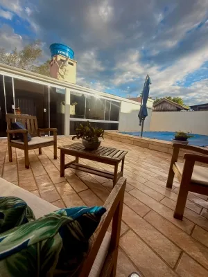 Imóvel totalmente mobiliado em Nova Tramandaí, com 4 dormitórios, sendo 1 suíte, 3 banheiros, piscina aquecida, área gourmet e área de serviço, garagem