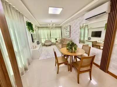 Lindo apartamento, próximo do mar, com 2 dormitórios,sendo 1 suite e 1 banheiro social, sala de estar, jantar e cozinha integradas, àrea de serviço, box para o carro, mobiliado, prédio conta com salão de festas.