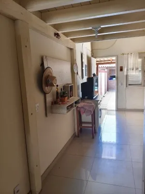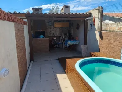 Casa geminada com piscina, localizada em região de moradores. Composta por 02 dormitórios sendo 1 suite, sala de estar e cozinha em ambiente integrado, banheiro social, churrasqueira e abrigo para carro. Mais informações consulte nossos corretores.
