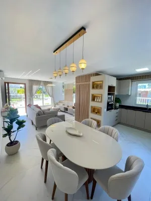 Sobrado Geminado em Alto Padrão Construtivo, localizado em ótima localização em Imbé, a poucos metros da Ponte,composto por 2 suítes,1 deles com closet, lavabo,banheiro social, sala de estar e jantar em conceito aberto, cozinha,área de serviço, mobiliado,decorado e equipado