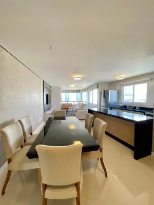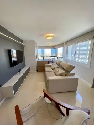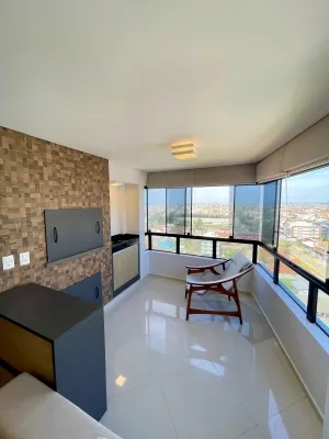 Apartamento Mobiliado com 2 suítes, lavabo,sala de jantar e estar em conceito aberto, cozinha, lavanderia, sacada de frente com churrasqueira, sacada ampla na suíte, Box térreo.