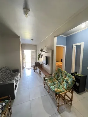 CASA GEMINADA TÉRREA, MOBILIADA, DE FRENTE PARA O MAR, COMPOSTA POR SALA E COZINHA INTEGRADAS, TRÊS DORMITÓRIOS SENDO UM SUÍTE, BANHEIRO SOCIAL, PISO PORCELANATO, ÓTIMO PÁTIO DE FRENTE E ESQUADRIAS EM ALUMÍNIO.