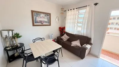 Apartamento mobiliado com vista para o mar, ideal para morar ou veranear, com dois dormitórios.
