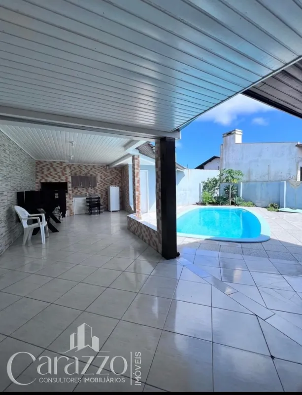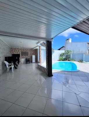 Belíssima Residência a poucos metros do mar em Nova Tramandaí composta por 3 dormitórios, sendo 1 suíte, 2 banheiros sociais, lavabo,salas de jantar e estar integradas a cozinha com churrasqueira, área de serviço, varanda, garagem fechada para 2 carros,piscina,alarme,Forro em PVC na parte interna e madeira na externa.