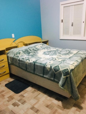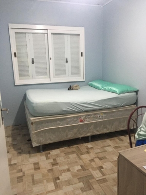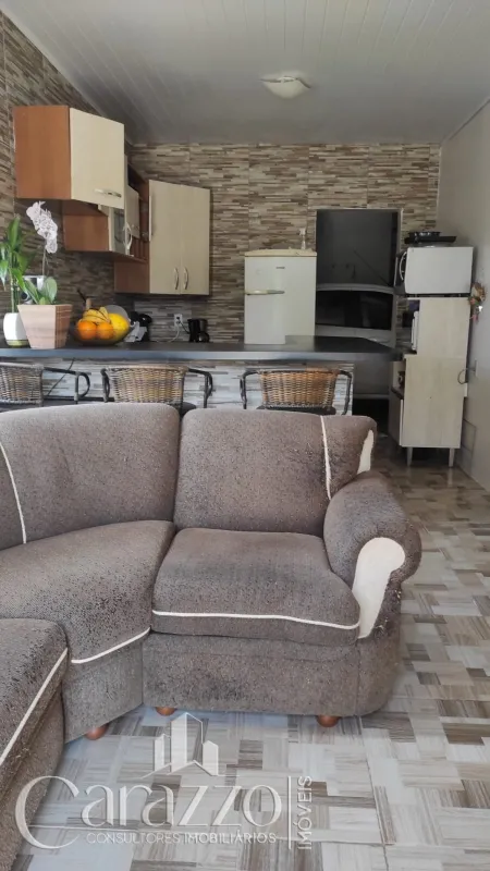 Casa composta por quatro dormitórios, sendo um deles suíte, um banheiro social, cozinha, sala de estar e jantar, churrasqueira, área de serviço e pátio de frente com jardim.